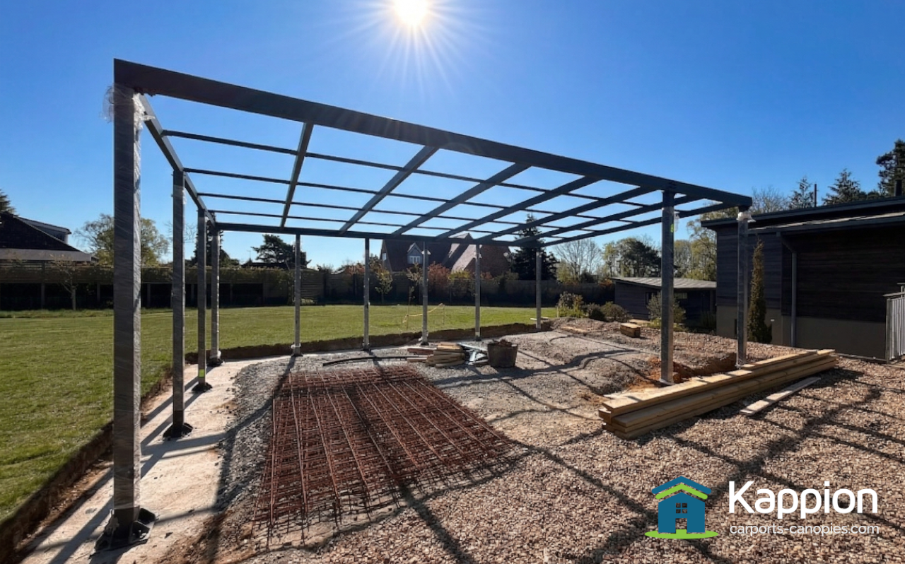 This week’s featured install in Gloucester is a massive 6m x 9m triple-bay carport, expertly crafted from galvanized steel and bronze polycarbonate to provide Ken’s cherished car collection with the ultimate year-round protection.