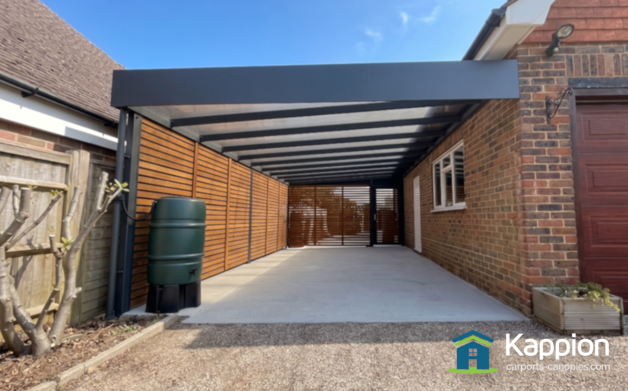 We recently transformed Lisa’s Cumbrian home by replacing her aging, leaky canopy with a sleek 7.3-meter Kappion Europort in contemporary Anthracite Grey, providing a durable and engineered solution that perfectly complements her driveway.